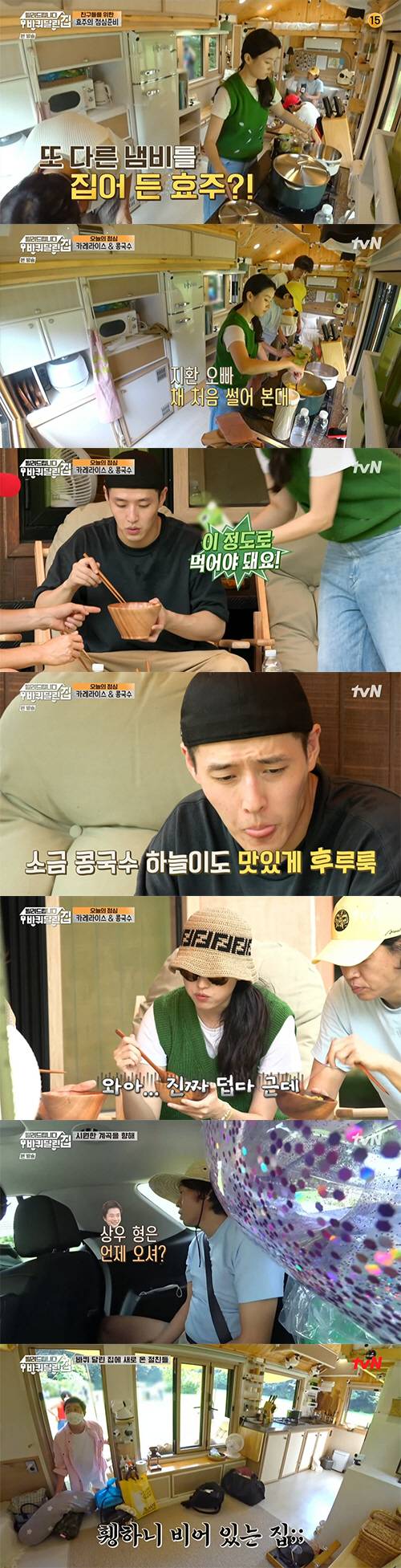 한효주는 멤버를 위해 카레라이스와 콩국수를 직접 만들어서 점심을 대접했다. 한효주가 직접 만든 음식을 본 멤버들은 "진짜 예쁘다. 이건 사진을 찍어야 한다"라며 감탄하는 모습을 보였다.