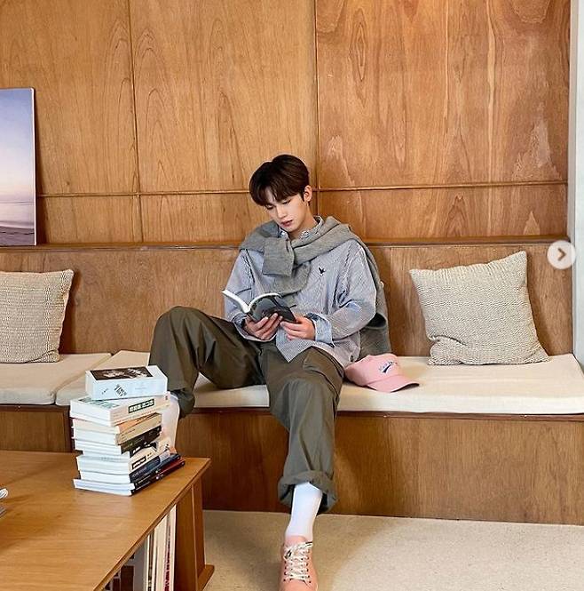 책을 읽는 콘셉트 사진에서는 김요한의 완벽한 비율과 모델 못지않은 포즈 센스를 엿볼 수 있다.