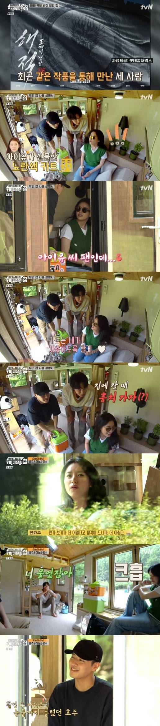 13일 오후 방송된 케이블채널 tvN '빌려드립니다 바퀴 달린 집' 1회에선 영화 '해적: 도깨비 깃발'(이하 '해적2') 주역 강하늘, 한효주, 이광수의 첫 입성기가 그려졌다.