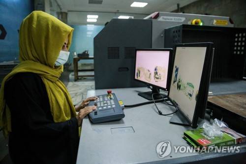 epa09465544 Afghan airport staff works at security check at Hamid Karzai International Airport in Kabul, Afghanistan, 13 September 2021. Citing the threat of a humanitarian catastrophe, the United Nations made an appeal to the international community to unblock aid to Afghanistan that was frozen when the Taliban returned to power nearly 20 years after being ousted by the United States. Afghans who plan to flee the country or are in need of cash to buy groceries and food resort to sell their household items as the country's economy is in shambles due to uncertainity. EPA/STRINGER