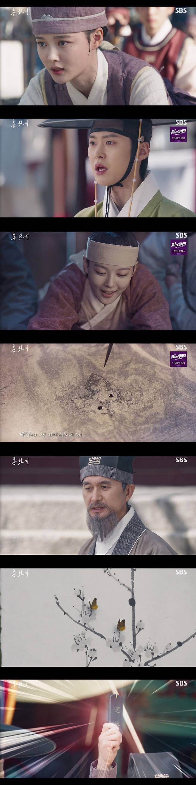 이날 방송에서 양명대군(공명 분)은 홍천기가 그린 그림을 보고 감탄했다. 그러나 그는 그림 속 나비를 발견하고 놀랐다. 앞서 그가 구매했던 소춘도 모작 속에서 발견했던 나비와 똑같았던 것.