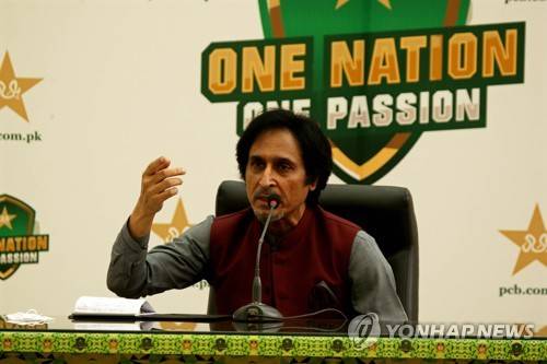 epa09465605 Ramiz Raja, former Pakistani test cricketer and now elected chairman of the Pakistan Cricket Board (PCB) speaks during a press conference at the cricket academy in Lahore, Pakistan, 13 September 2021. Ramiz Raja briefed the media about the New Zealand cricket squad that arrived in Pakistan for their first tour in 18 years to play 3 ODIs in Rawalpindi and 5 T20Is in Lahore. EPA/RAHAT DAR