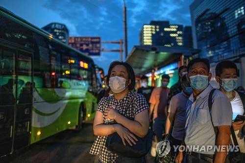 epa09465628 People wearing protective face masks wait at a bus station during an evening rush hour amid the coronavirus pandemic in Beijing, China, 13 September 2021. China's National Health Commission reported 49 Covid-19 cases in the mainland for 12 September, including 22 locally transmitted cases in south-eastern Fujian province. EPA/ROMAN PILIPEY