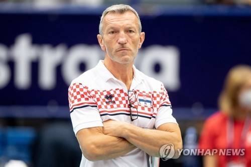 epa09465661 Head coach of Croatia Emanuele Zanini during the EuroVolley 2021 Men Round of 8 match between Slovenia and Croatia in Ostrava, Czech Republic, 13 September 2021. EPA/LUKAS KABON
