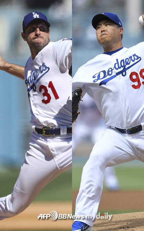 [맥스 슈어저(왼쪽)와 류현진. 사진 = AFPBBNEWS]- ⓒ마이데일리(www.mydaily.co.kr). 무단전재&재배포 금지 -
