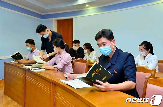 (평양 노동신문=뉴스1) = 북한 노동당 기관지 노동신문은 14일 기상수문국이 "위대성 도서들을 통한 학습을 정상화하고 있다"면서 관련 사진을 실었다. 신문은 사상교육의 신속성, 실효성이 곧 시대의 숨결이고 보폭이라면서 당보를 통한 위대성 교양도 실속 있게 하라고 주문했다.