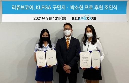 리쥬브코어는 지난 13일 "서울 서초구 본사 회의실에서 한국여자프로골프(KLPGA) 챔피언스 투어에서 활약하고 있는 박소현(48), 구민지(49)와 후원 계약을 체결했다. 리쥬브코어는 이번 계약으로 올해까지 두 선수에게 리쥬브코어 항노화 제품을 제공하고, 대회 성적에 따른 금액 등을 지원하기로 했다"라고 밝혔다.