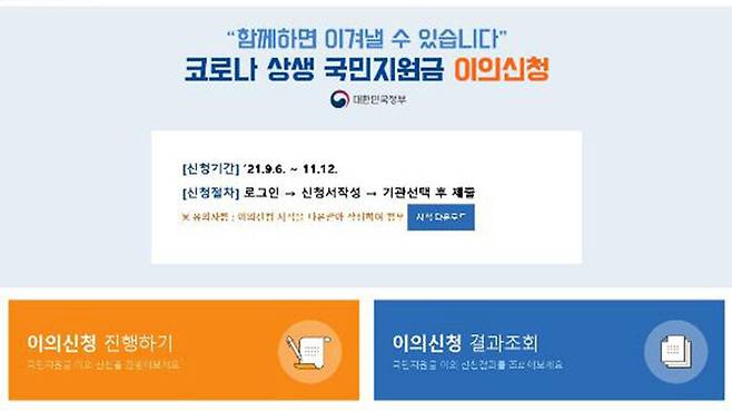 국민지원금 이의 신청은 '국민신문고 이의 신청' 창구에서 오는 11월 12일까지 가능합니다.