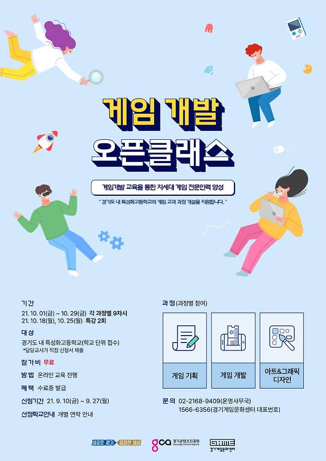 경기도와 경기콘텐츠진흥원이 경기도 내 특성화고 대상 게임 개발 교과과정 '게임 개발 오픈클래스' 참여학교를 27일까지 모집한다.