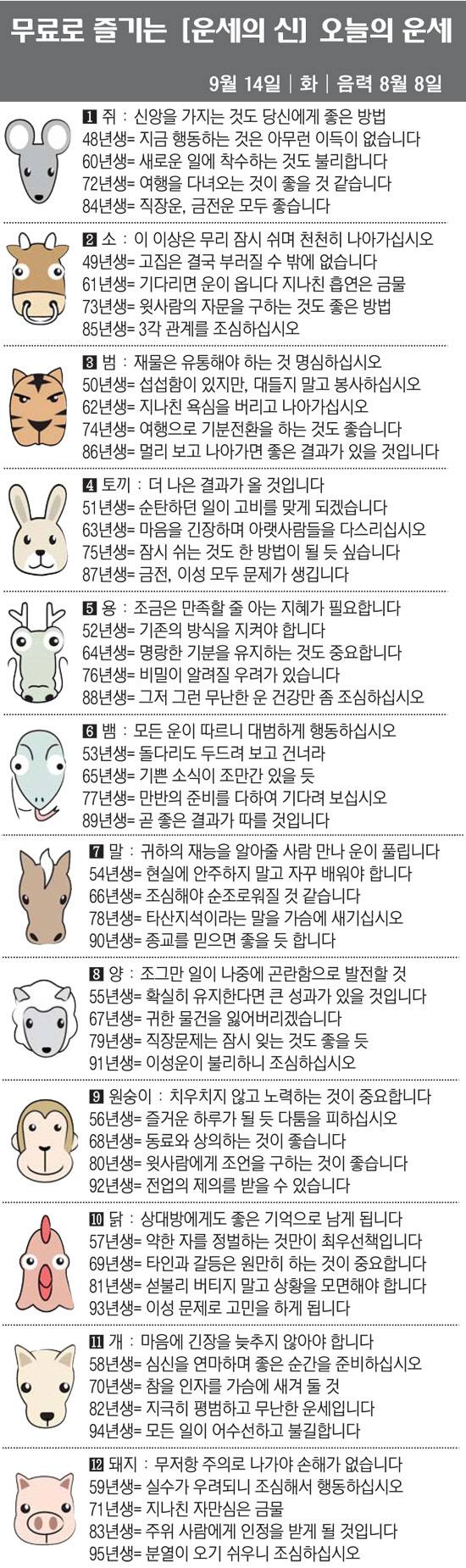 [직장인을 위한 오늘의 운세] 2021년 9월 14일 화요일(음력 8월 8일)