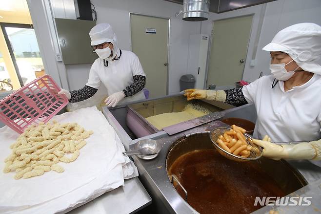 [강릉=뉴시스] 김경목 기자 = 민족 최대의 명절인 추석을 앞둔 14일 오전 전통한과로 유명한 강원도 강릉시 사천면 모래네한과마을 선미한과(대표 김성래)에서 우리과자인 한과를 생산하고 있다. 2021.09.14. photo31@newsis.com