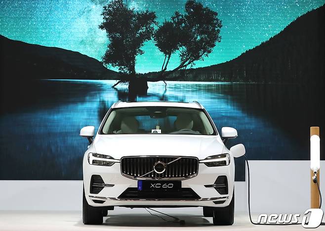 (서울=뉴스1) 이성철 기자 = 14일 서울 용산구 그랜드 하얏트 서울에서 볼보자동차코리아가 국내 최초 통합형 SKT 인포테인먼트 서비스를 탑재한 볼보 신형 XC60을 공개하고 있다. 약 4년만에 선보이는 이번 신형 XC60은 국내 최대의 내비게이션 서비스 티맵(TMAP)과 인공지능(AI) 플랫폼 누구(NUGU), 사용자 취향 기반의 음악 플랫폼 플로(FLO) 등이 기본 탑재된다. 일부 편의사양 및 파워트레인에 따라 3가지 하이브리드 엔진, 5가지 트림으로 출시된다. 2021.9.14/뉴스1