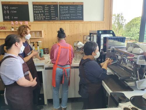 이번 바리스타 자격증반 수업은 발달장애인 직업능력 향상을 위한 프로그램으로 지난 2020년 하반기부터 1년 과정으로 진행되어 왔으며 참가자들이 자격증 취득 이후 직업 현장으로 나아가도록 도움을 주고자 영암 기찬랜드에 있는 '해피맘 카페'와 연계하여 직접 체험을 할 수 있는 실습 과정을 진행하고 있다.