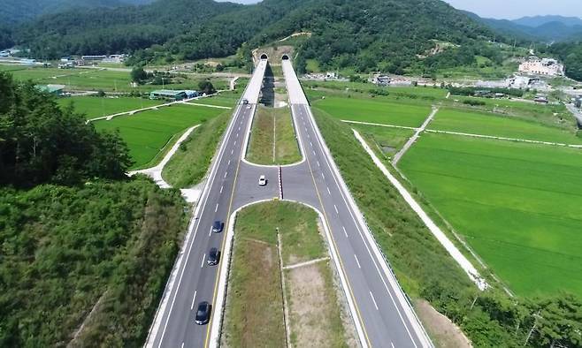 14일 국토교통부에 따르면 죽계-진전 국도건설공사는 기존 2차로를 4차로로 확장하는 사업이다. 지난 2014년 3월 착공 후 7년 6개월에 걸쳐 총 사업비 1783억 원을 투입했다.