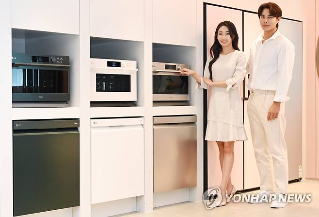 (서울=연합뉴스) LG전자가 광파오븐, 식기세척기 등 프리미엄 주방가전 구매고객에게 할인 혜택을 제공한다고 14일 밝혔다. 사진은 오브제컬렉션 모델인 LG 디오스 광파오븐(위쪽)과 식기세척기 스팀을 소개하는 모델들. 2021.9.14
