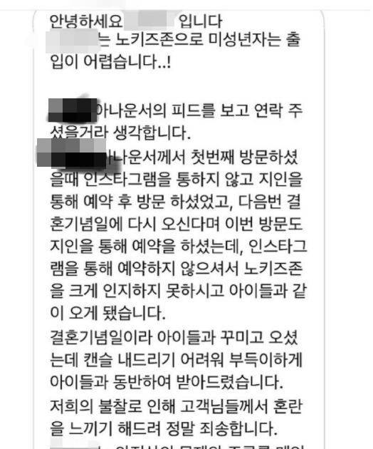 이후 또 다른 네티즌이 L레스토랑의 SNS에 '노키즈존' 관련 문의를 했고 L레스토랑 측의 답변이 공개돼 논란은 증폭됐다. L레스토랑 측은 '박지윤 아나운서의 피드를 보고 연락 주셨을 거라 생각한다'고 전제하며 'SNS가 아닌 지인을 통해 예약 후 방문했고 노키즈존을 크게 인지하지 못하고 아이들과 같이 왔다. 결혼기념일이라 아아들과 꾸미고 오셨는데 취소하기가 어려워 부득이하게 받아드렸다. 저희 불찰로 고객님들께 혼란을 드려 정말 죄송하다'고 해명했다.