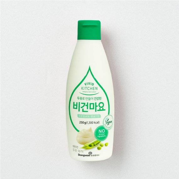비비드키친 비건마요는 마요네즈에 들어가는 동물성 원료인 계란 대신 식물성 원료인 두유를 사용해 마요네즈의 고소한 맛과 부드러운 식감을 재현한 비건 제품이다. 또 칼로리와 지방 함량이 적고 콜레스테롤이 전혀 없어, 비건 소비자는 물론 건강에 관심이 많은 소비자들에게도 안성맞춤이다. 한국비건인증원의 비건 인증도 받았다. 가격은 250g에 4980원이다.