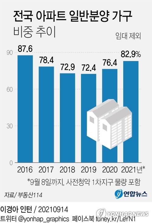 [그래픽] 전국 아파트 일반분양 가구 비중 추이
