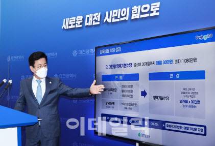 [대전=이데일리 박진환 기자] 대전시가 내년부터 아이 출생후 3년간 매월 30만원의 양육수당을 지급한다. 허태정 대전시장은 14일 대전시청사에서 ‘대전시 인구정책 방향’이란 주제로 열린 기자회견을 통해 ‘대전형 양육기본수당’ 정책을 발표했다. 새롭게 도입되는 대전형 양육기본수당은 부모의 양육비용 부담을 덜어주기 위해 아이가 만 3세가 되기 전까지 매월 30만원을 지급한다는 내용이다. 출생연도나 부모의 소득수준 등과 관계없이 만 3세 미만이고, 부모가 대전에서 6개월 이상 거주한 시민이면 누구나 받을 수 있다. 대전형 양육기본수당 도입으로 기존 출산 장려지원금 및 셋째 아이 이상 양육지원금은 내년부터 폐지된다. 대전에서 태어난 뒤 3년 이상 계속해서 거주할 경우 모두 1080만원을 받을 수 있다. 정부가 지급하는 첫만남이용권, 영아수당, 아동수당 등까지 더해지면 출생 시 200만원과 함께 월별 70만원을 받을 수 있어 초기 양육 부담이 줄어들 것으로 기대된다.