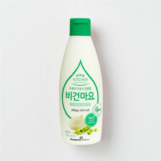 비비드키친 비건마요는 마요네즈에 들어가는 동물성 원료인 달걀 대신 식물성 원료인 두유를 사용해 마요네즈의 고소한 맛과 부드러운 식감을 재현한 비건 제품이다.