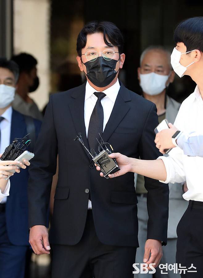 [SBS연예뉴스 | 백승철 기자] 프로포폴을 불법 투약한 혐의로 재판에 넘겨진 배우 하정우가 14일 오후 서울 서초구 서울중앙지법에서 열린 1심 선고공판을 마치고 법원을 나서고 있다.