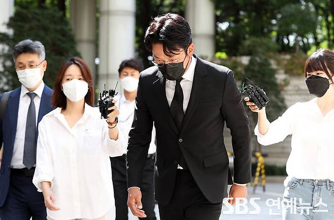 [SBS연예뉴스 | 백승철 기자] 프로포폴을 불법 투약한 혐의로 재판에 넘겨진 배우 하정우가 14일 오후 서울 서초구 서울중앙지법에서 열린 1심 선고공판에 출석하고 있다.