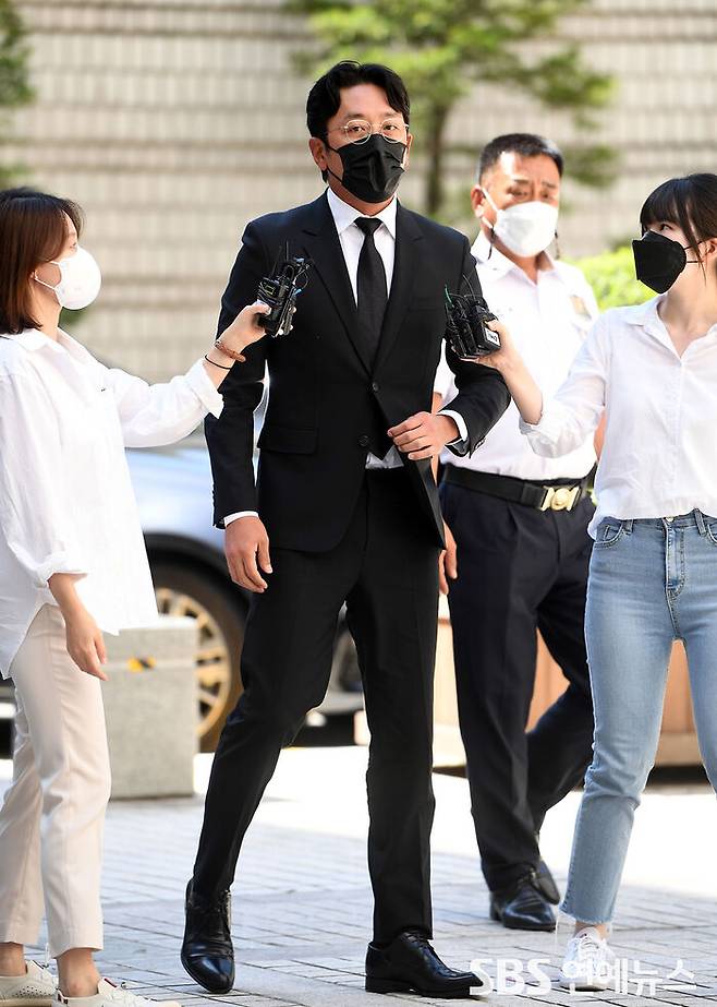 [SBS연예뉴스 | 백승철 기자] 프로포폴을 불법 투약한 혐의로 재판에 넘겨진 배우 하정우가 14일 오후 서울 서초구 서울중앙지법에서 열린 1심 선고공판에 출석하고 있다.