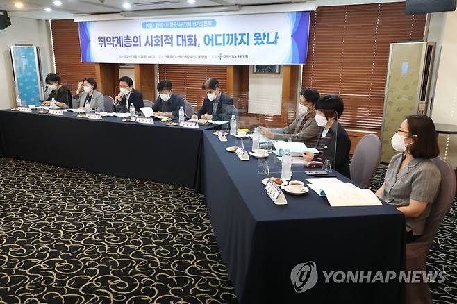 (서울=연합뉴스) 이정훈 기자 = 14일 오후 서울 중구 한국프레스센터에서 경제사회노동위원회 주최로 여성·청년·비정규직위원회 평가토론회 '취약계층의 사회적 대화, 어디까지 왔나'가 열리고 있다. 2021.9.14