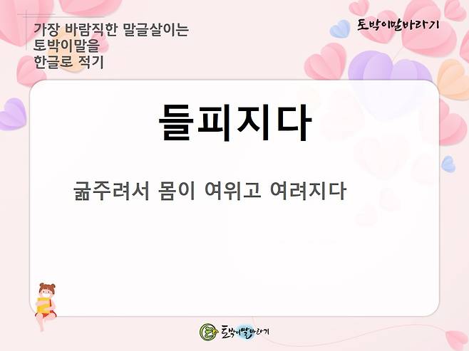 오늘 알려드릴 토박이말은 '들피지다'입니다.