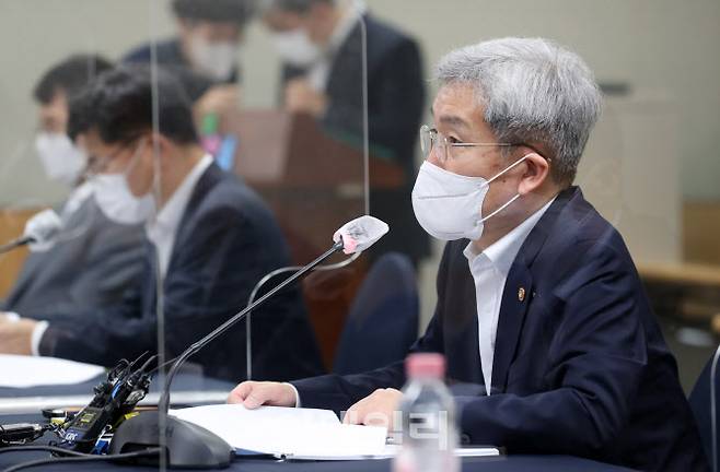 [이데일리 김태형 기자] 고승범 금융위원장이 14일 오후 서울 중구 서민금융중앙통합지원센터에서 열린 서민취약계층 간담회에서 모두발언을 하고 있다.