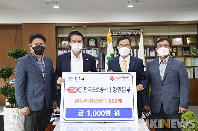 먼저 한국도로공사 강원본부는 원주지역 코로나19 취약계층인 저소득층과 지역소상공인을 지원하기 위해 원주시청을 통해 원주시 소재 사회복지기관(5개)에 온누리상품권 1000만원을 기부했다.