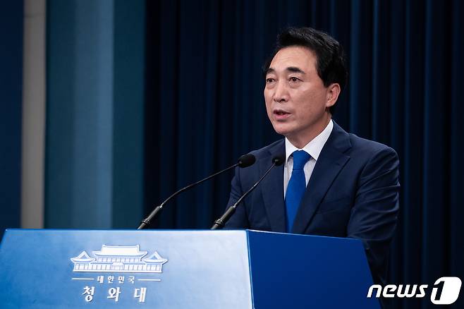 (서울=뉴스1) 유승관 기자 = 박수현 청와대 국민소통수석이 14일 청와대 브리핑룸에서 신임 감사원장 후보 지명 관련 브리핑을 하고 있다.