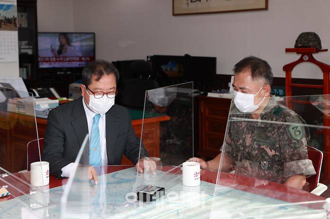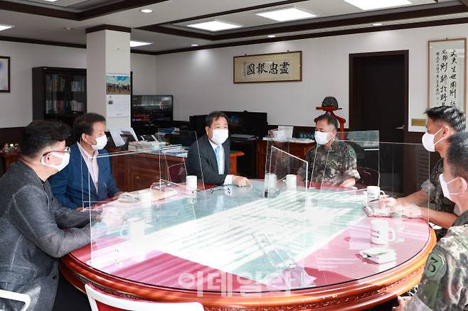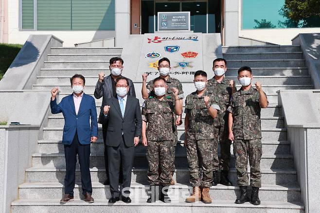 [남양주=이데일리 정재훈 기자] 조광한 남양주시장이 추석 명절을 앞둔 14일 양정동에 소재한 제73보병사단 충일부대를 찾아 위문금을 전달하고 부대원들을 격려했다.