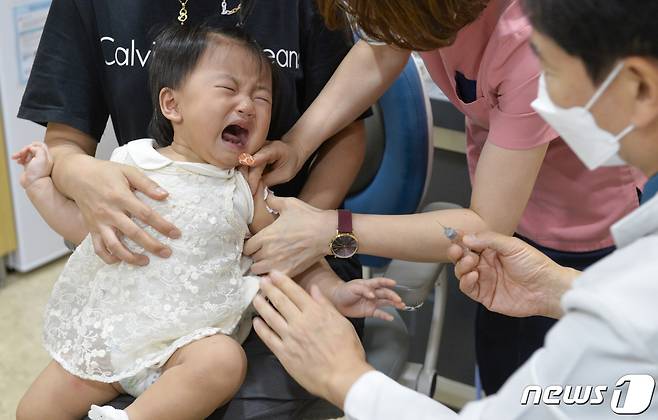 (수원=뉴스1) 김영운 기자 = 2회 접종이 필요한 어린이(생후 6개월~만 8살)와 임신부를 대상으로 인플루엔자(독감) 무료 예방접종을 시작한 14일 오후 경기도 수원시의 한 소아·청소년과 의원에서 아이가 독감 예방접종을 하고 있다. 질병관리청에 따르면 1회 접종 대상인 생후 6개월부터 만 13세 이하 어린이는 다음달 14일부터 무료접종을 시작하며 65세 이상 고령자는 10월 중으로 독감 예방접종을 실시할 예정이다. 2021.9.14/뉴스1