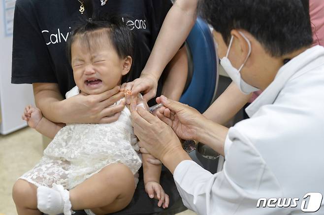 (수원=뉴스1) 김영운 기자 = 2회 접종이 필요한 어린이(생후 6개월~만 8살)와 임신부를 대상으로 인플루엔자(독감) 무료 예방접종을 시작한 14일 오후 경기도 수원시의 한 소아·청소년과 의원에서 아이가 독감 예방접종을 하고 있다. 질병관리청에 따르면 1회 접종 대상인 생후 6개월부터 만 13세 이하 어린이는 다음달 14일부터 무료접종을 시작하며 65세 이상 고령자는 10월 중으로 독감 예방접종을 실시할 예정이다. 2021.9.14/뉴스1
