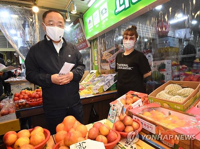 추석 앞두고 전통시장 찾은 홍남기 부총리