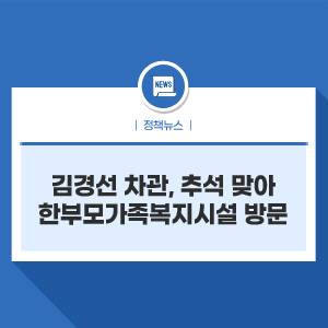 김경선 여성가족부 차관은 준비한 추석 선물을 전달하며 “시설에서 생활하는 한부모와 자녀가 따뜻한 명절을 보낼 수 있도록 세심히 보살펴 달라.”라고 종사자들에게 당부하고, “여성가족부도 한부모의 자립과 자녀양육 등에 부족함이 없도록 최선을 다해 지원하겠다.”라고 밝혔다.