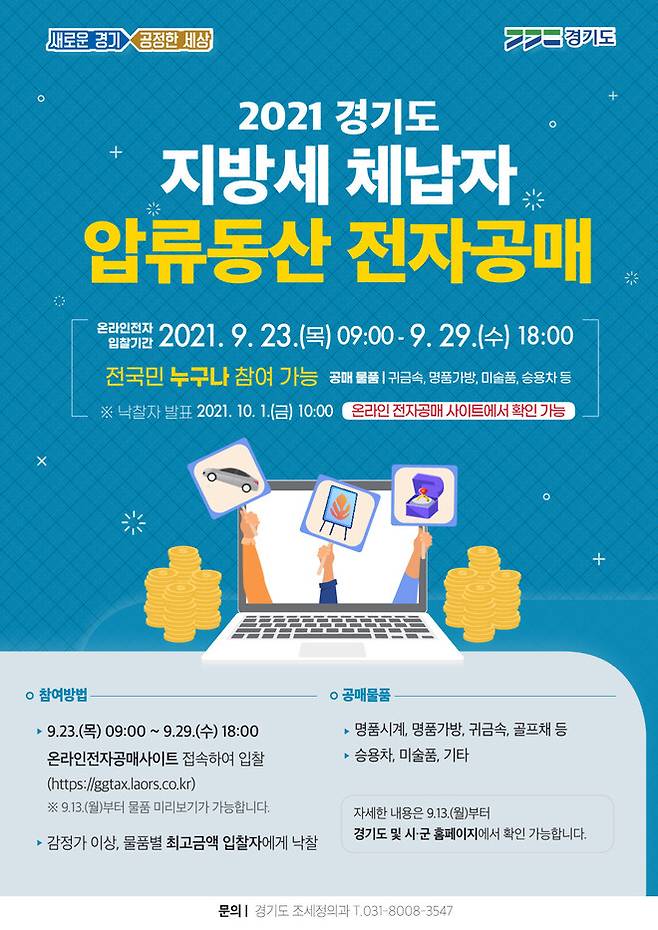 공매 물품은 경기도 온라인 전자 공매사이트(ggtax.laors.co.kr)에서 볼 수 있다.