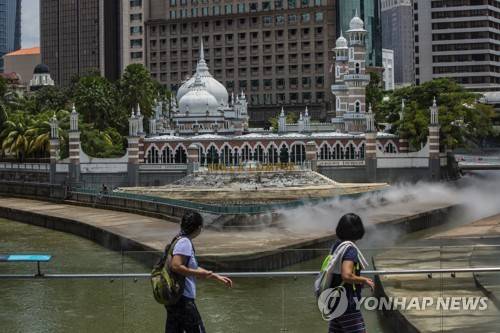 epa09467002 Visitors walk past the oldest mosque, Jamek Mosque in Kuala Lumpur, Malaysia, 14 September 2021. Malasyian economy is expected to have better growth in 2022 suppoerted by the re-opening of more economic sectors. EPA/AHMAD YUSNI