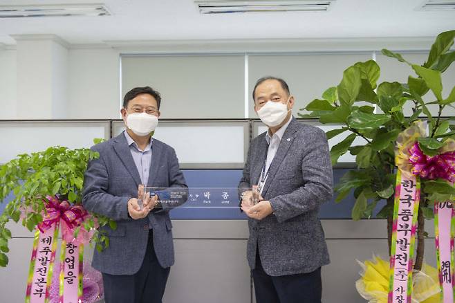 한국중부발전은 최근 사내벤처 법인 파워테크솔루션의 독립분사를 결정하고 14일 분사한 사내벤처 독립분사 대표에게 명패를 증정했다고 밝혔다.