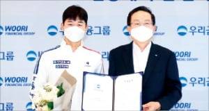 우리금융그룹이 국내 첫 근대5종 올림픽 동메달리스트 전웅태 선수(사진 왼쪽)를 공식 후원한다고 14일 밝혔다. 우리금융은 2022년 항저우 아시안게임과 2024년 파리올림픽까지 전 선수를 지원한다. 손태승 우리금융 회장(오른쪽)은 “전 선수가 마음껏 기량을 펼칠 수 있도록 전지훈련이나 격려금 등 지원을 아끼지 않을 것”이라고 말했다.