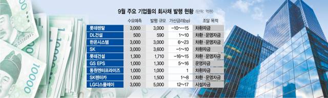 이에 따라 재무구조가 탄탄한 포스코와 롯데그룹 계열사인 포스코케미칼과 롯데렌탈도 이달 들어 각각 2,000억 원과 3,000억 원을 회사채 발행으로 조달하며 금융기관 대출 상환 재원을 마련했다. CJ제일제당과 SK㈜ 역시 각각 3,700억 원, 3,600억 원어치의 회사채를 발행해 단기 자금(CP) 상환에 나서기도 했다.