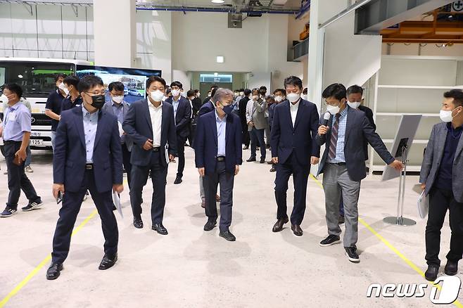 (서울=뉴스1) = 권칠승 중소벤처기업부 장관이 14일 국내 최초 무인 자율주행 특장차(노면청소차, 쓰레기수거차) 규제자유 특구 현장을 방문해 실증 추진현황을 듣고 있다. (중소벤처기업부 제공) 2021.9.14/뉴스1