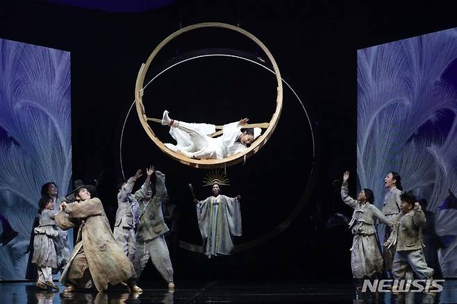 [서울=뉴시스] 박진희 기자 = 국립창극단이 14일 서울 중구 국립극장 해오름극장에서 '흥보전' 프레스콜을 하고 있다. 이번 공연은 판소리 연출가 김명곤과 대명창 안숙선이 참여하여 우리 소리의 격조를 지켜내며 고전의 현대적 변주를 시도한 작품이다. 2021.09.14. pak7130@newsis.com