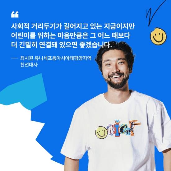 캠페인에 참여한 안성기 유니세프한국위원회 친선대사는 “혼자가 아닌 우리의 힘을 모으면 전 세계 어린이들에게 놀라운 변화를 만들어 줄 수 있습니다”, 김혜수 친선대사는 “여러분들의 열정이 기후위기를 겪는 전 세계 어린이들을 더 활짝 웃게 하는 기회가 될 것입니다”, 유니세프동아시아태평양지역 최시원 친선대사는 “사회적 거리두기가 길어지고 있는 지금이지만 어린이를 위하는 마음은 그 어느 때보다 더 긴밀히 연결돼 있으면 좋겠습니다”라는 메시지를 각각 전했다.