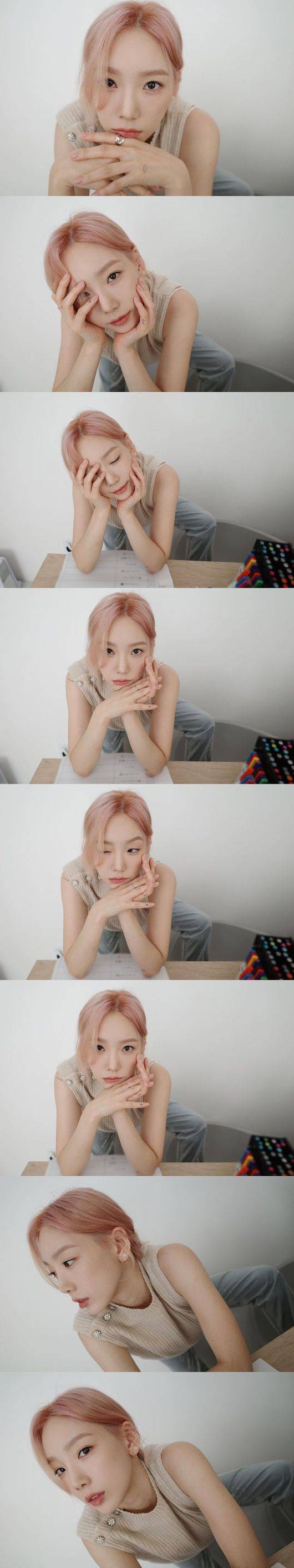 공개된 사진은 민소매와 청바지를 입은 태연이 카메라를 응시한 채 여러 포즈를 취하고 있는 모습.