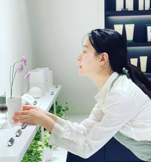 공개된 사진에는 이영애가 직접 론칭한 화장품 브랜드 매장을 찾은 모습이 담겼다. 사진 속 이영애는 앞치마를 두르고 매장에 장식할 화병에 꽃꽂이까지 직접 신경 쓰며 애정을 드러냈다.