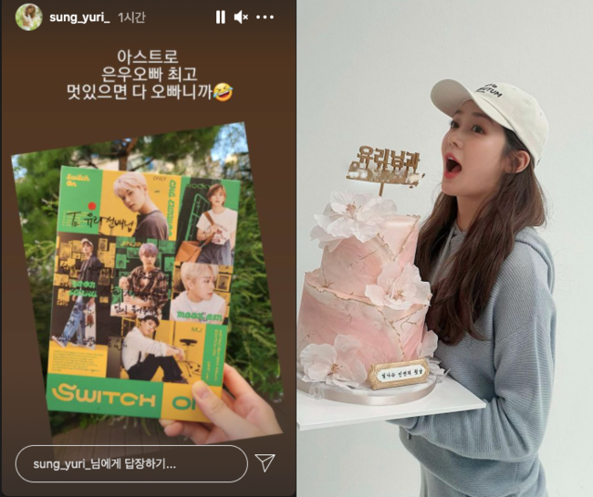 14일 성유리는 본인의 인스타그램 스토리에 '아스트로 은우오빠 최고 멋있으면 다 오빠니까'라는 글과 함께 한 장의 사진을 올렸다.