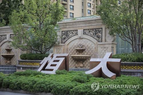 epa09467228 The Evergrande name seen outside an Evergrande housing complex in Beijing, China, 14 September 2021. Chinese property developer Evergrande said on 14 September that its property sales will likely continue to drop significantly in September, resulting in a further deterioration of its cash situation, according to media reports. EPA/WU HONG