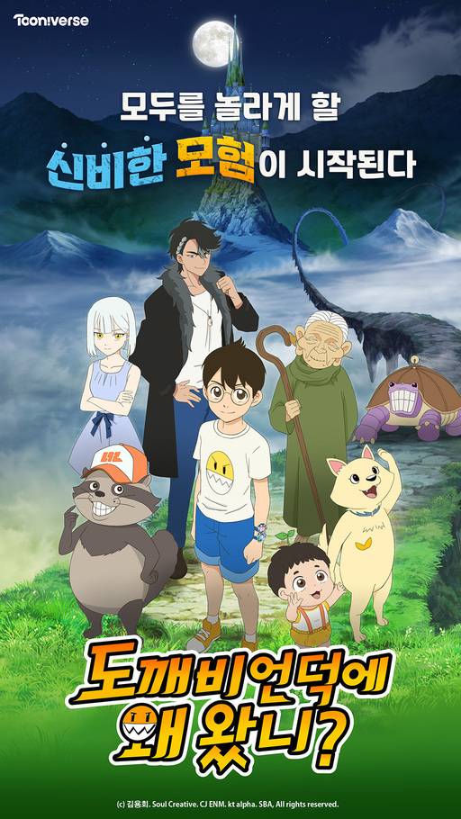 웹툰을 원작으로 한 애니메이션도 있다. 지난 7월 21일 첫선을 보인 투니버스 신작 애니메이션 ‘도깨비언덕에 왜 왔니?’다. 동쪽여왕의 성에 잡혀 있는 부모님을 구하기 위해 친구들과 함께 도깨비언덕 너머로 떠나는 열 살 소년 ‘가람’을 이야기한다. 동화적 상상력을 바탕으로 한 신비로운 판타지 세계 속에서 가람과 친구들이 펼치는 흥미진진한 모험과 긴장감 넘치는 액션을 담은 판타지 액션 어드벤처다.